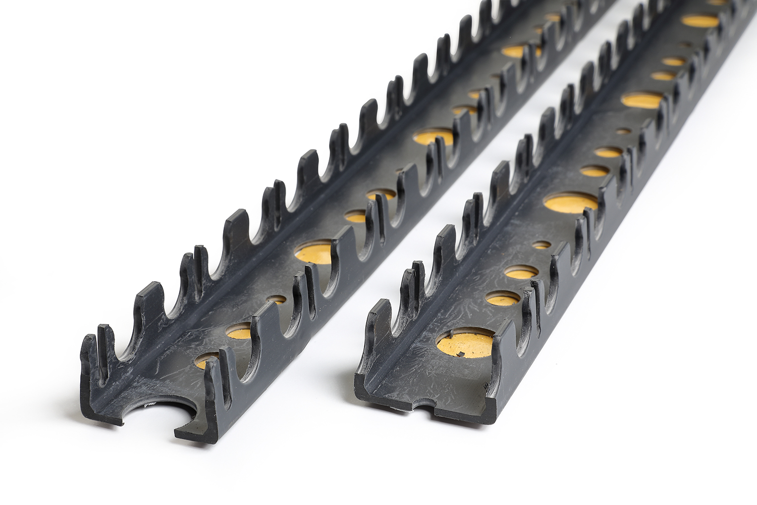 Barra portatubo per tubazione Pe-Xa da 14x2 mm da fissare al supporto murario mediante tappi ad espansione in base al tipo di muro. La barra è facilmente tagliabile a misura in cantiere senza attrezzi grazie alle pratiche incisioni di pretaglio. Le barre sono provviste lateralmente di scanalature per il tubo ogni 2,5 cm facilitando, così, il posizionamento del tubo in prossimità del collettore e permettendo i passi di posa 10 e 15 cm.