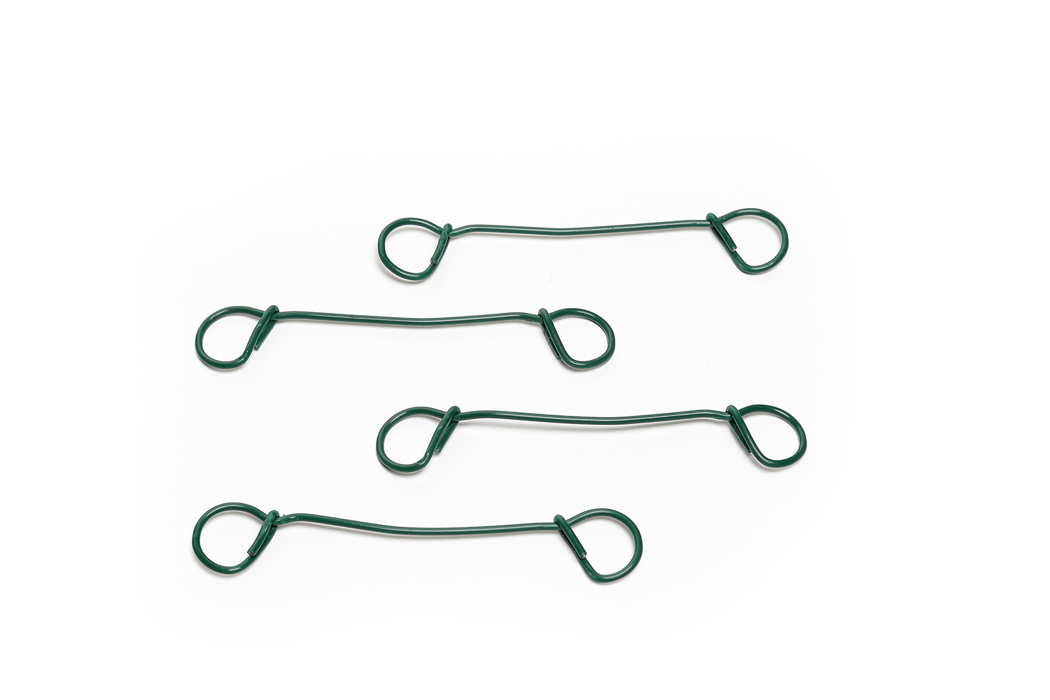 Fissarete in acciaio plastificato per unire i fogli di rete metallica mediante l’uso dell’apposito attrezzo; il fissarete ha due asole alle estremità che vengono attorcigliate fra loro dallo strumento dopo aver legato insieme più fogli di rete.