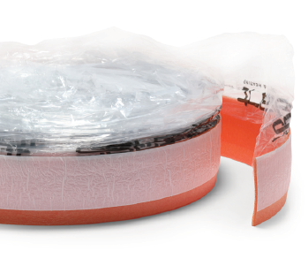 Striscia in polietilene espanso a cellule chiuse, fornito in rotoli di 50 m di lunghezza, altezza 250 mm con adesivo sul retro per tutta la superficie. La striscia permette la dilatazione termica del massetto oltre a contribuire ad isolarlo termicamente e acusticamente dai muri perimetrali. Dopo l’asciugatura del massetto e la posa della pavimentazione viene tagliata l’altezza a misura.